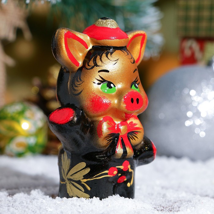 Сувенир "Поросёнок Феофан", фарфор, 10 см, хохлома