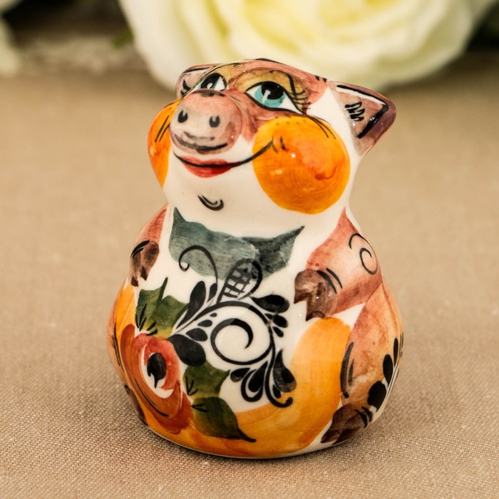 Сувенир «Поросёнок Обжора», 7 см, гжель, цвет