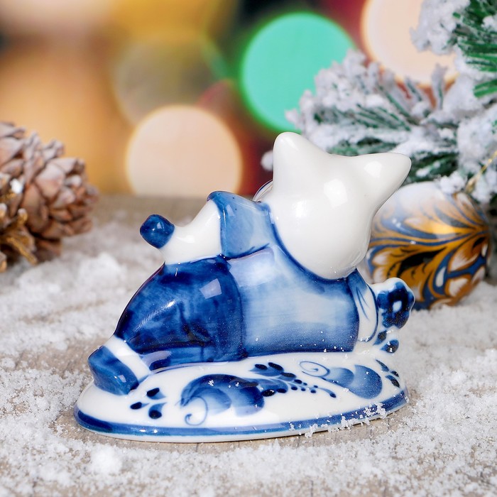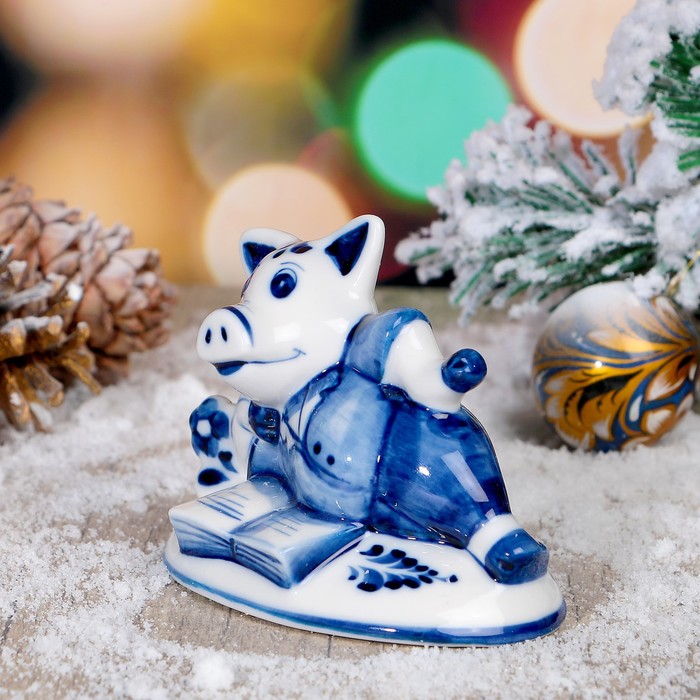 Сувенир «Поросёнок с книгой», 6,5х10х7 см, гжель