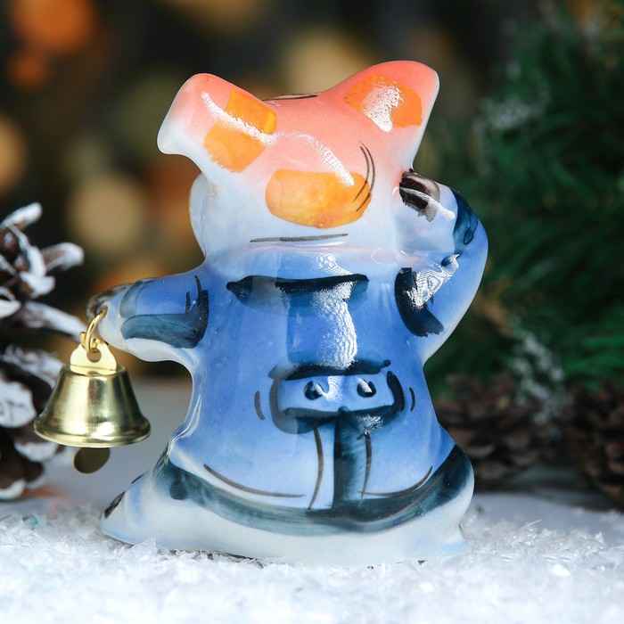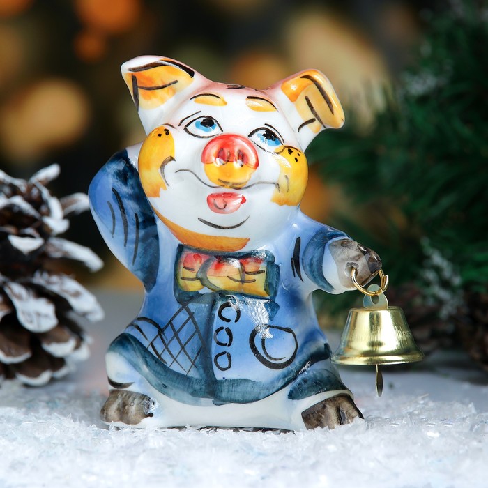 Сувенир «Поросёнок Шалун», с колокольчиком, 11 см, гжель, цвет