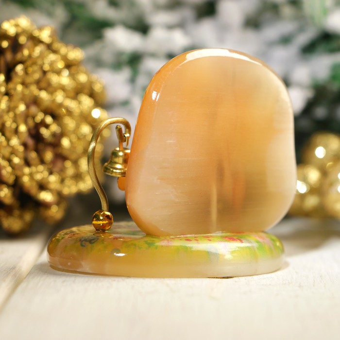 Сувенир «Счастливый поросёнок», с колокольчиком, денег в дом несу, 5,5х4,5х5 см, селенит
