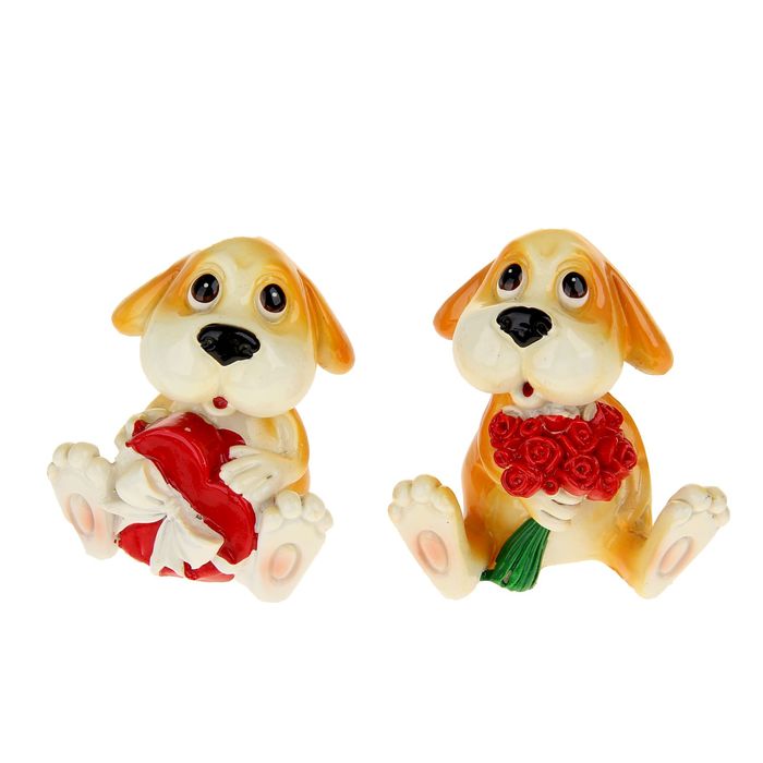 Сувенир "Щенок с цветами/сердцем" МИКС