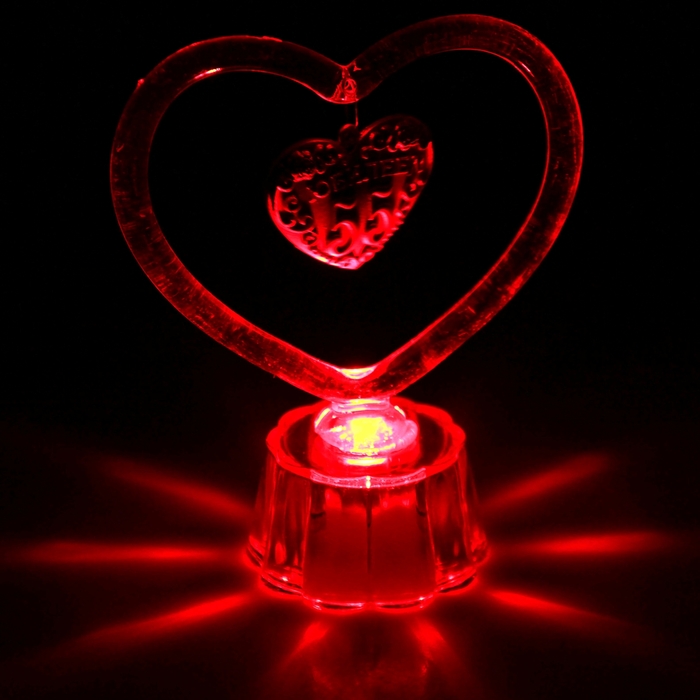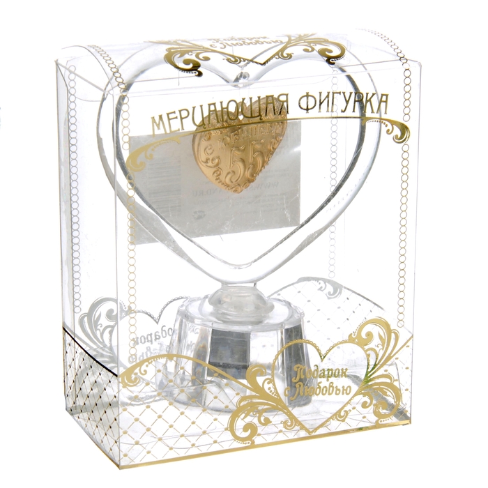 Мерцающая фигура сердца из пластика с металлической подвеской, украшенной стразами, расположена на подставке с подсветкой. Рассеивающийся свет в темноте делает фигуру заметной, окутывая ее нежным свечением. Такой подарок станет украшением вечера, не оставив равнодушным никого!