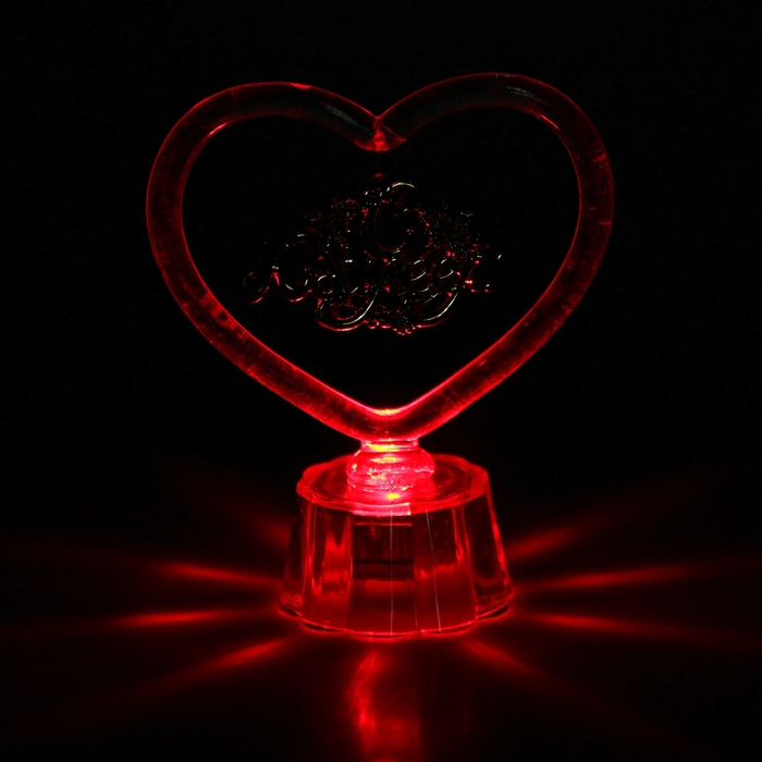 Мерцающая фигура сердца из пластика с металлической подвеской, украшенной стразами, расположена на подставке с подсветкой. Рассеивающийся свет в темноте делает фигуру заметной, окутывая ее нежным свечением. Такой подарок станет украшением вечера, не оставив равнодушным никого!