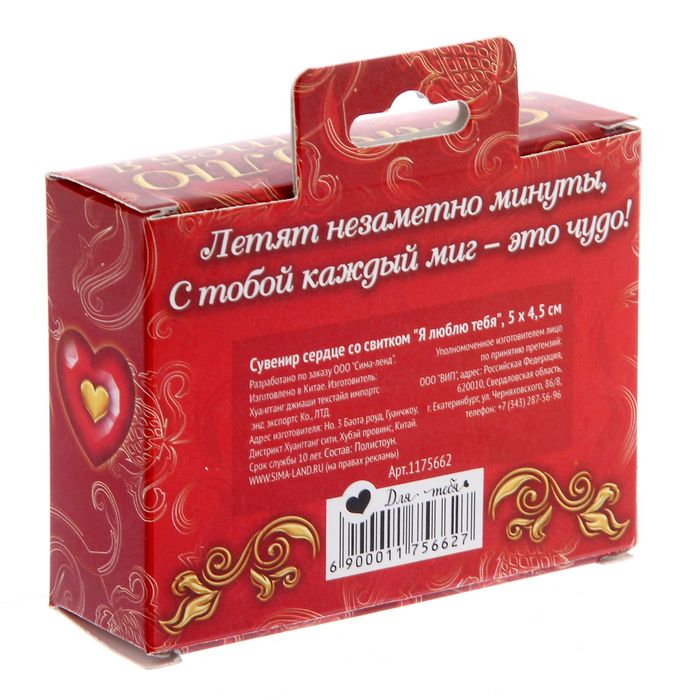 Сувенир сердце со свитком "Я люблю тебя"