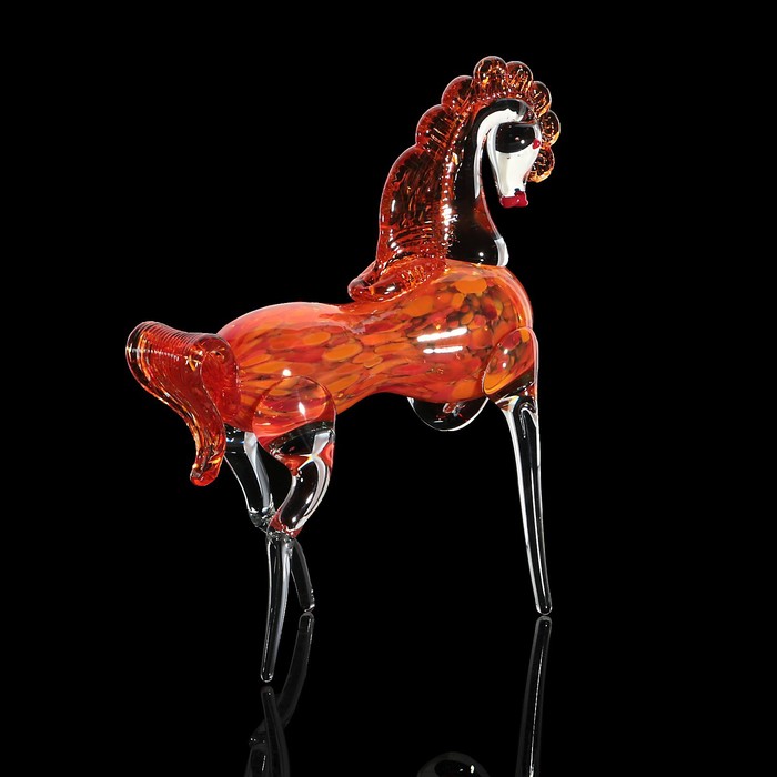 Сувенир стекло в стеклокрошку "Конь красный" 25х25х9 см