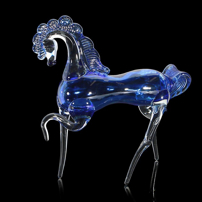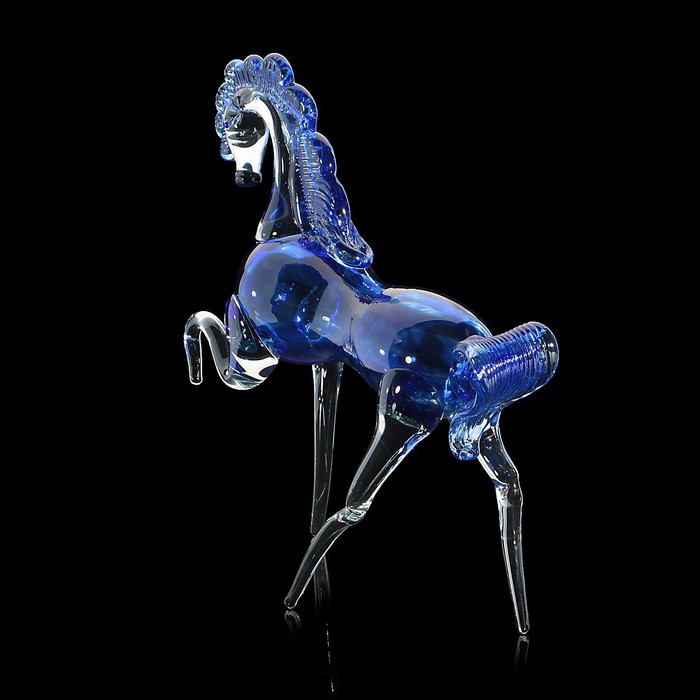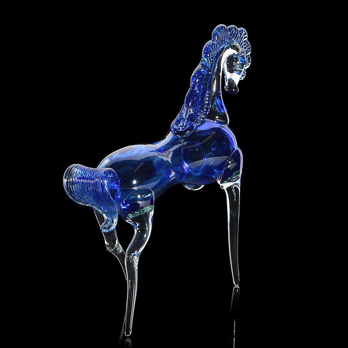 Сувенир стекло в стеклокрошку "Конь синий" 25х25х9 см