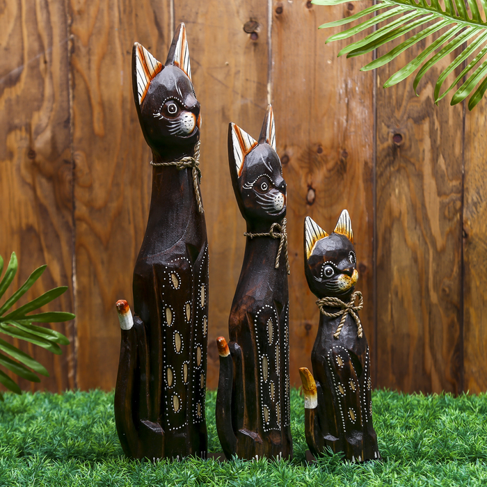 Еще одним символом загадочной Индонезии считается именно кошка, их можно встретить буквально на каждом углу. Местный народ относятся к этим животным с особым трепетом, ведь, по их поверью, они являются олицетворением прекрасного чувства «любви». Сувенир "Верные кошечки", набор 3 шт. станет актуальным подарком на свадьбу, годовщину или же 14 февраля. Пусть она хранит тепло Вашего домашнего очага и оберегает семью от невзгод.