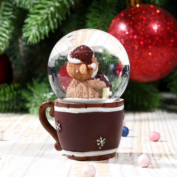 Сувенир водяной шар в форме чашки "Медвежонок в колпаке"