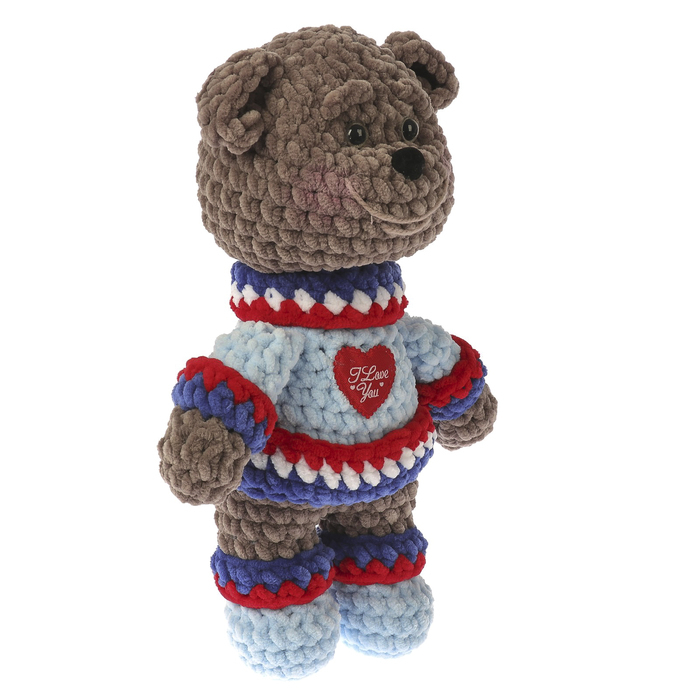 Сувенир вязаный "Мишка-малыш с сердцем" синий, 30см
