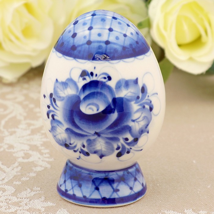 Сувенир «Яйцо» малое, гжель, фарфор, h=9 см