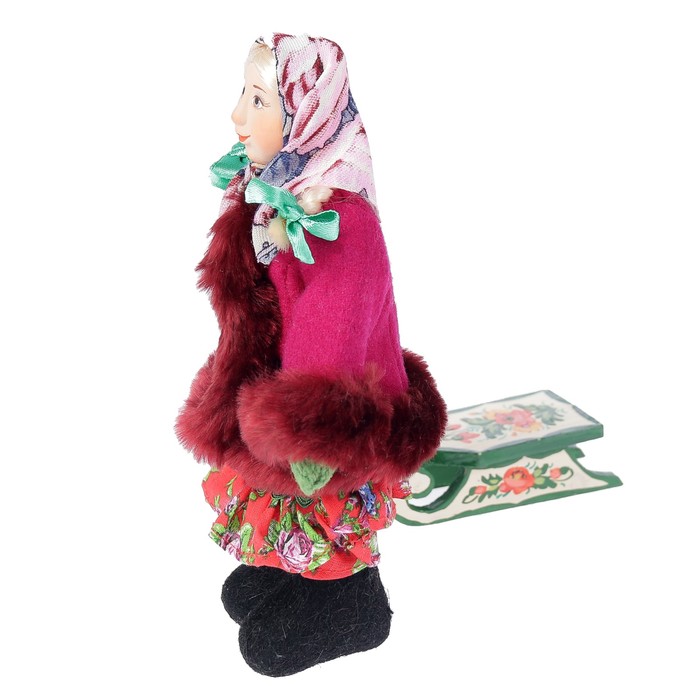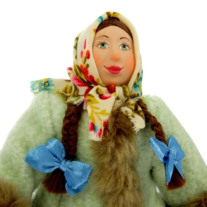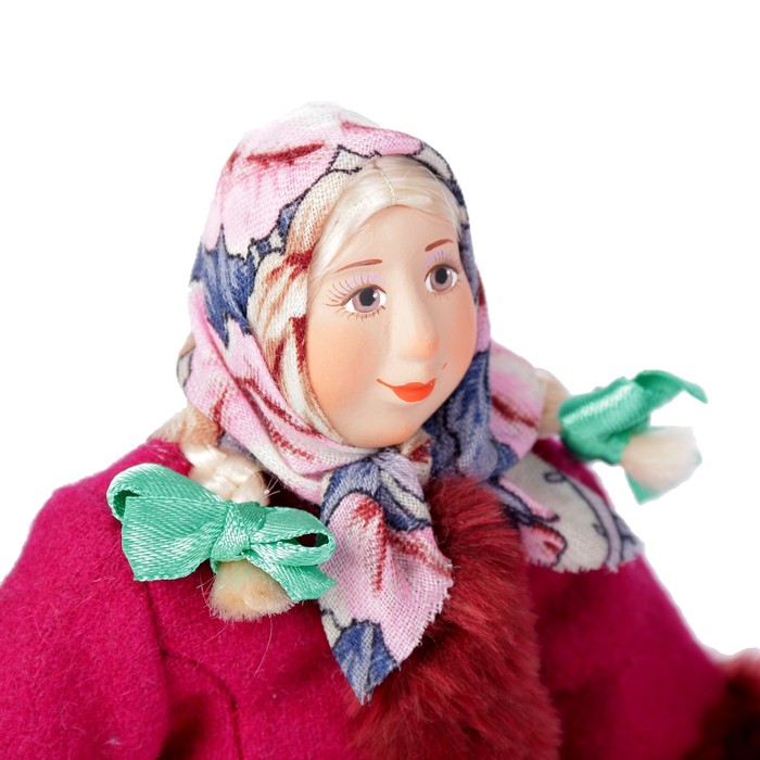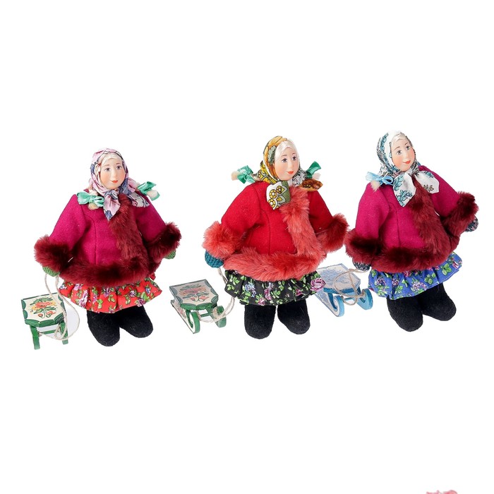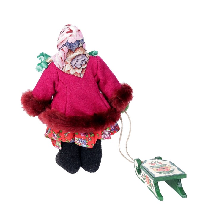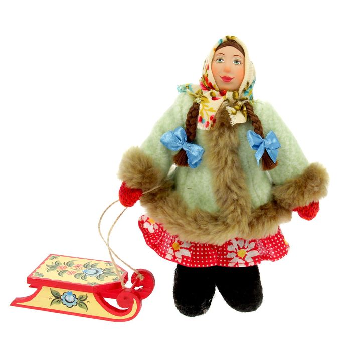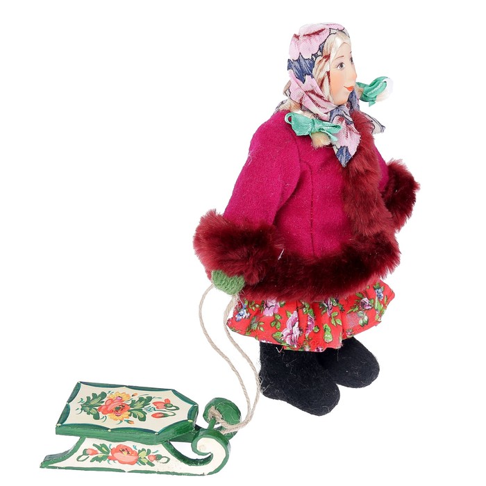Сувенирная кукла "Девочка в зимнем костюме с санками", МИКС