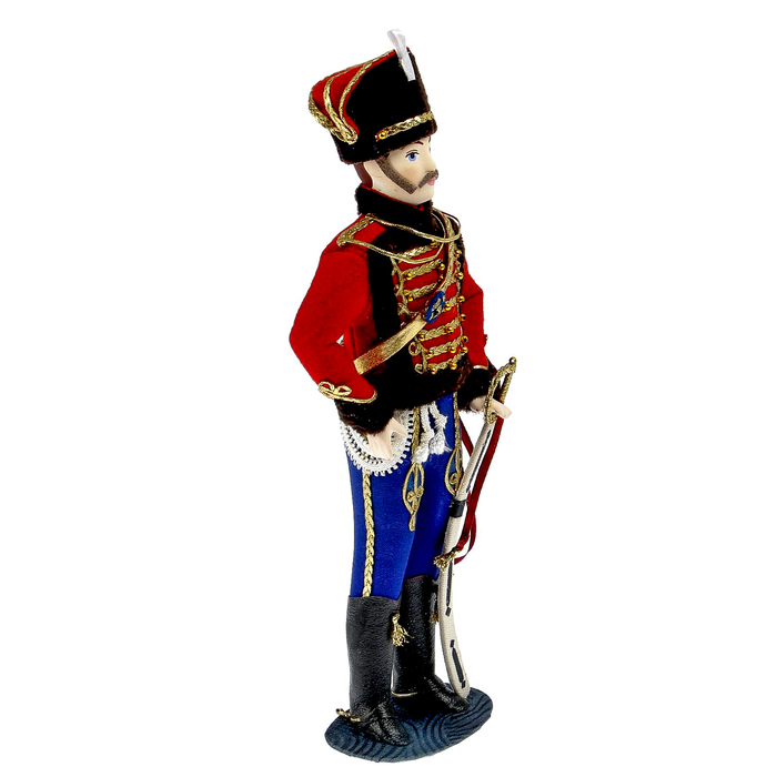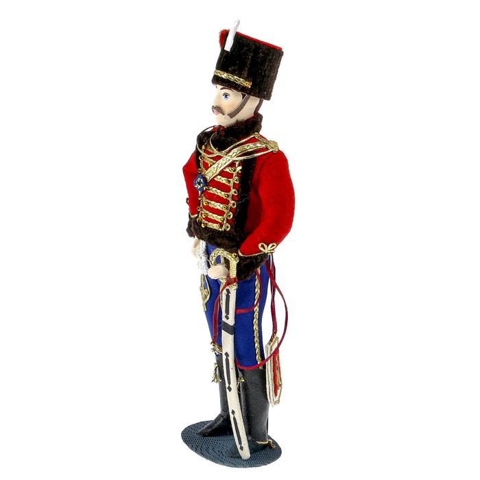 Сувенирная кукла "Гусар" в мундире лейб-гвардии гусарского полка. 1849 г. Россия — актуальный подарок для коллекционера! Она станет достойным украшением любого помещения, привнесёт в него неповторимость и нотки милитари стиля. Российское производство, белоснежный фарфор, ручная роспись, пошив одеяния из ткани нескольких видов — всё это говорит об эксклюзивности изделия.