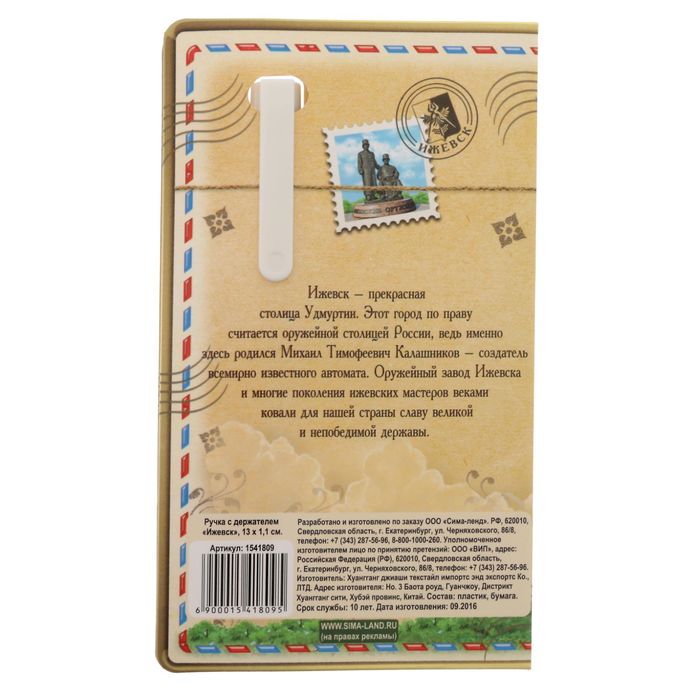 Ручка сувенирная «Ижевск» — оригинальный и полезный подарок с авторским дизайном для ваших друзей, родных или коллег. Аксессуар станет незаменимым помощником в работе, а яркая и стильная открытка будет напоминать о любимом городе.