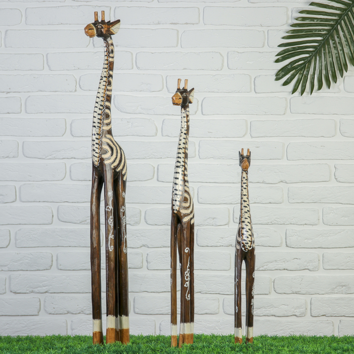 Сувенирный набор "Жирафы" (100,80,60) см, резной узор, дерево