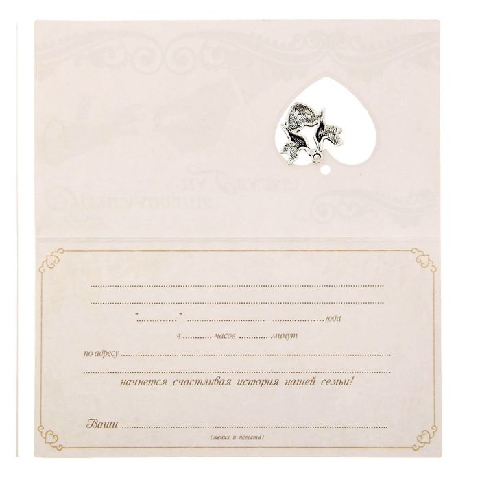 Свадьба — одно из главных событий в жизни каждого человека. Для идеального торжества необходимо продумать каждую мелочь. Чтобы помочь будущим молодожёнам, наши дизайнеры с любовью создали это свадебное приглашение. Родным и близким будет приятно получить индивидуальную красивую открытку с эксклюзивным дизайном.