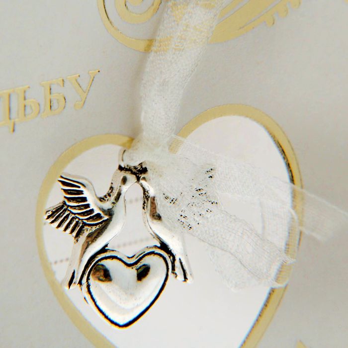 Приглашение выполнено в форме горизонтальной открытки размером 13 х 7 см, декорировано резным фигурным рисунком и милой подвеской из металла с бантом. Внутри располагается текст приглашения, свободные поля для имени получателя, времени, даты и адреса проведения мероприятия. Заполните необходимые строки и раздайте приглашение гостям.