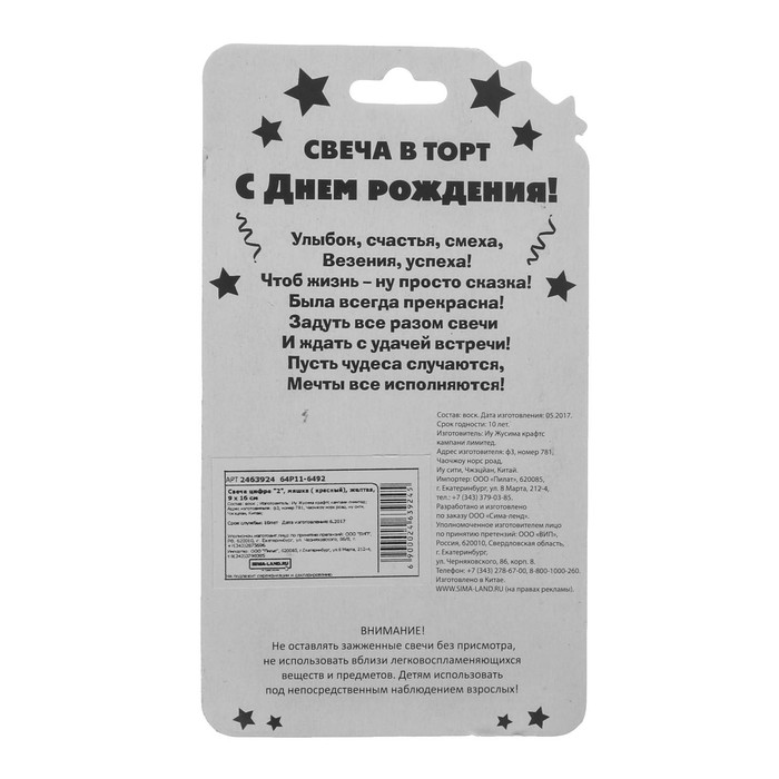 Свеча цифра "2" — непременный атрибут праздника, который бывает раз в году! Он обязательно поднимет настроение виновнику торжества.
