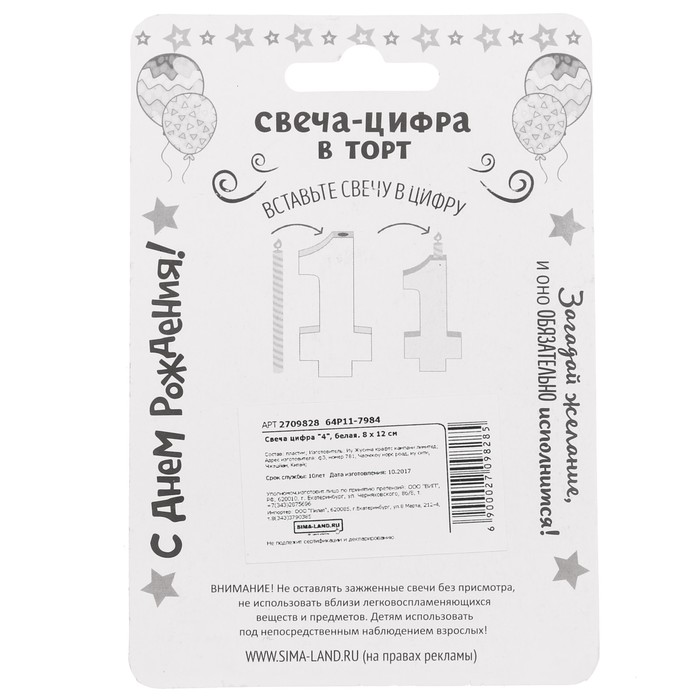 Свеча цифра "4" — непременный атрибут праздника, который бывает раз в году! Он обязательно поднимет настроение виновнику торжества.