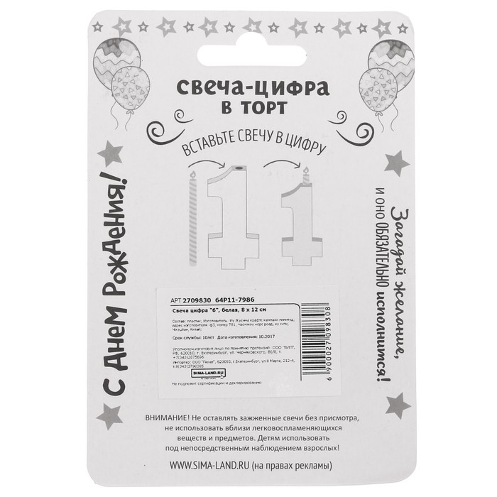 Свеча цифра "6" — непременный атрибут праздника, который бывает раз в году! Он обязательно поднимет настроение виновнику торжества.