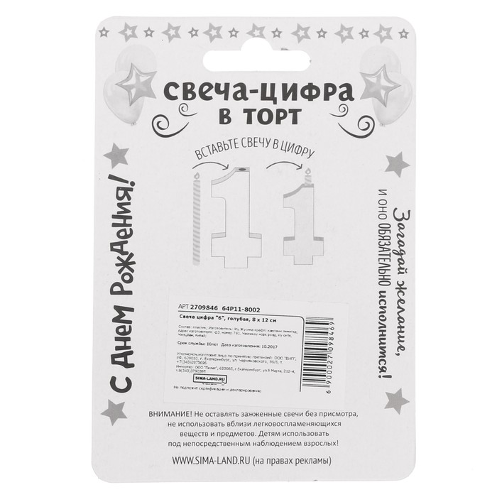 Свеча цифра "6" — непременный атрибут праздника, который бывает раз в году! Он обязательно поднимет настроение виновнику торжества.