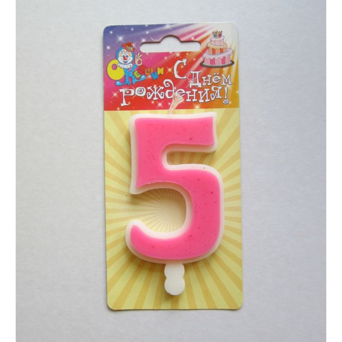 свеча для торта цифра "Классика" розовая "5", большая — непременный атрибут праздника, который бывает раз в году! Он обязательно поднимет настроение виновнику торжества.