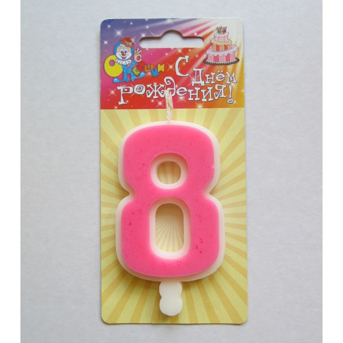 свеча для торта цифра "Классика" розовая "8", большая — непременный атрибут праздника, который бывает раз в году! Он обязательно поднимет настроение виновнику торжества.