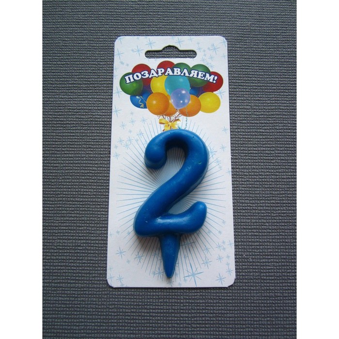 Свеча для торта цифра "Овал" синяя "2", плёнка