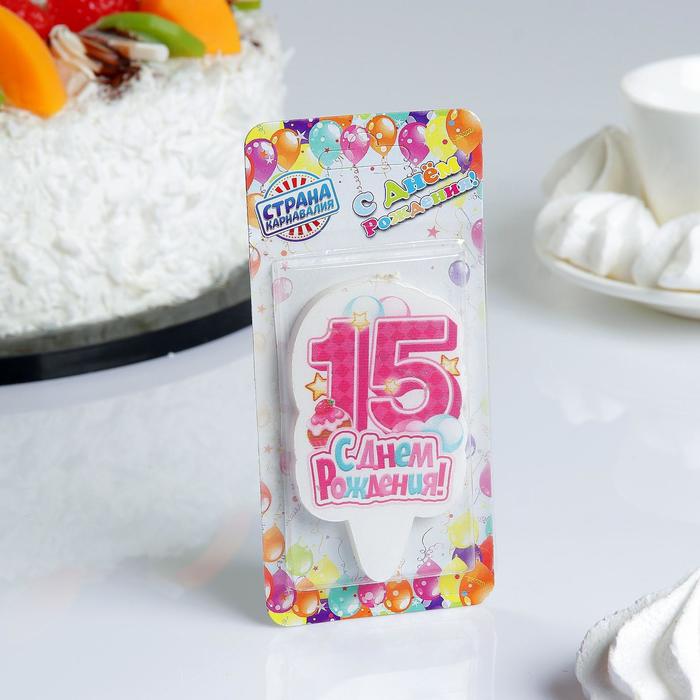 Свеча для торта цифра "С Днём Рождения" розовая "15" — непременный атрибут праздника, который бывает раз в году! Он обязательно поднимет настроение виновнику торжества.