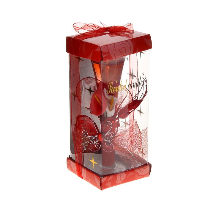 Свеча гелевая "Три каллы и бабочка", цвет красный
