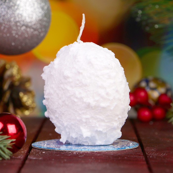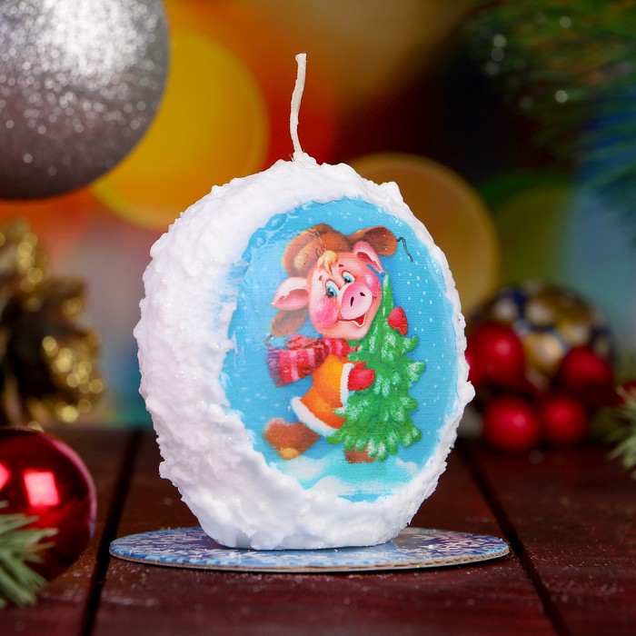Свеча круглая заснеженная "Хрюша у ёлки" Символ Года 2019