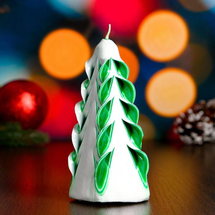 Свеча резная "Ёлка.С Новым годом!" заснеженная 12-13см