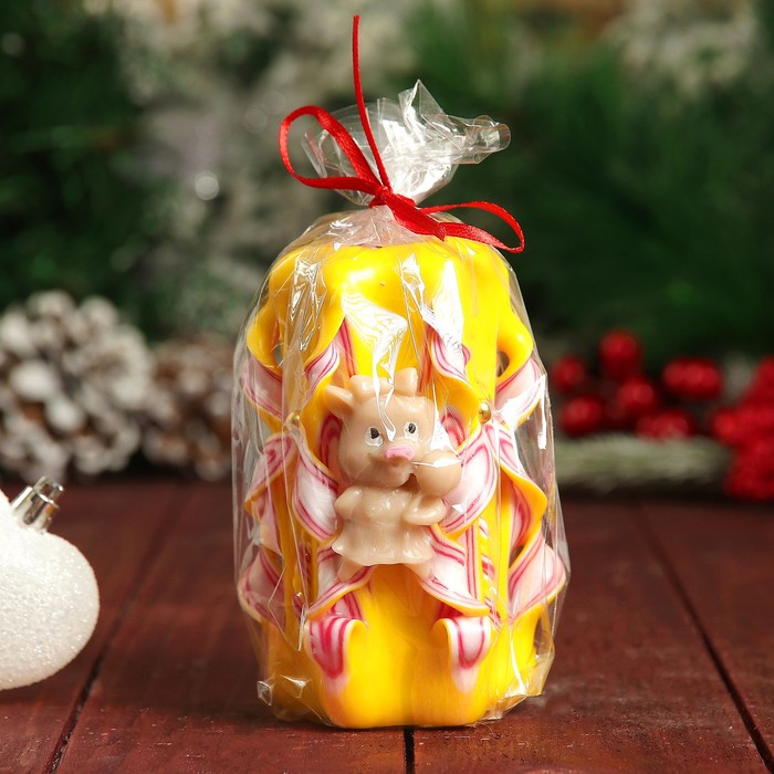 Свеча резная "Хрюшка, на счастье" жёлтая, 10-11см, Символ года 2019