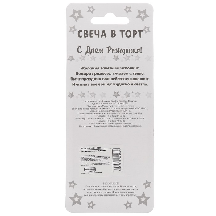| Высота свечи, см | 7 |