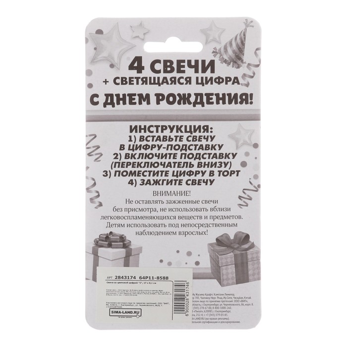Свеча со световой цифрой "6"