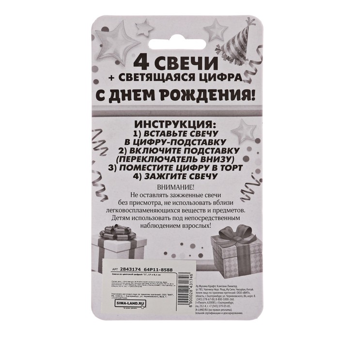 | Высота свечи, см | 6 |