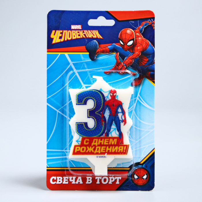 Свеча в торт 3 "С Днем Рождения", Человек-паук, 5 х 8 см — непременный атрибут праздника, который бывает раз в году! Он обязательно поднимет настроение виновнику торжества.