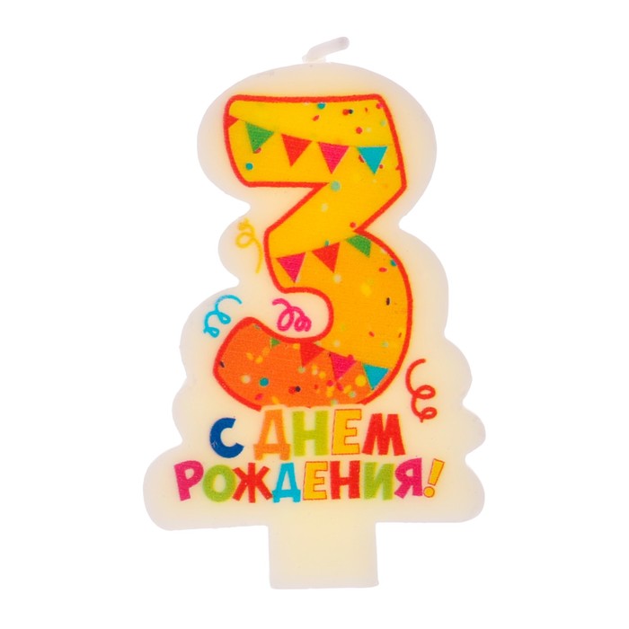 Свеча в торт цифра 3 "С днем рождения"