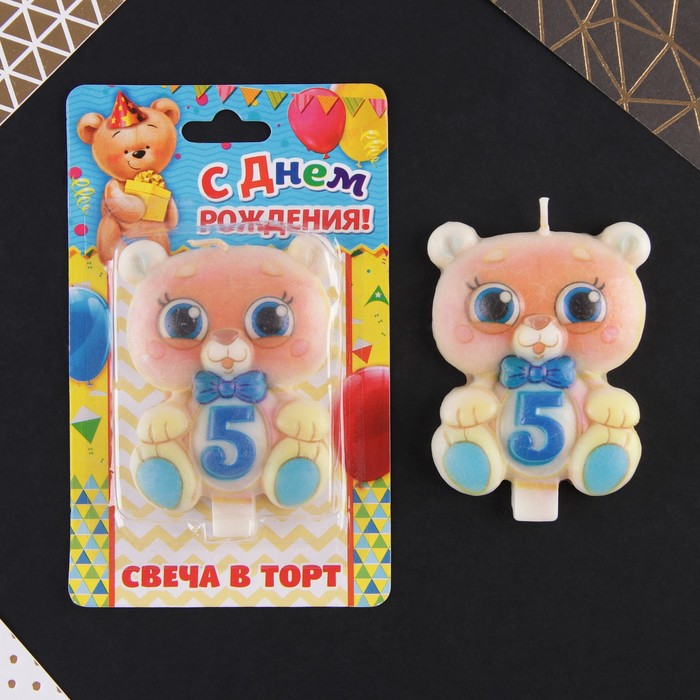 Свеча в торт цифра 5 "Мишка" — непременный атрибут праздника, который бывает раз в году! Он обязательно поднимет настроение виновнику торжества.