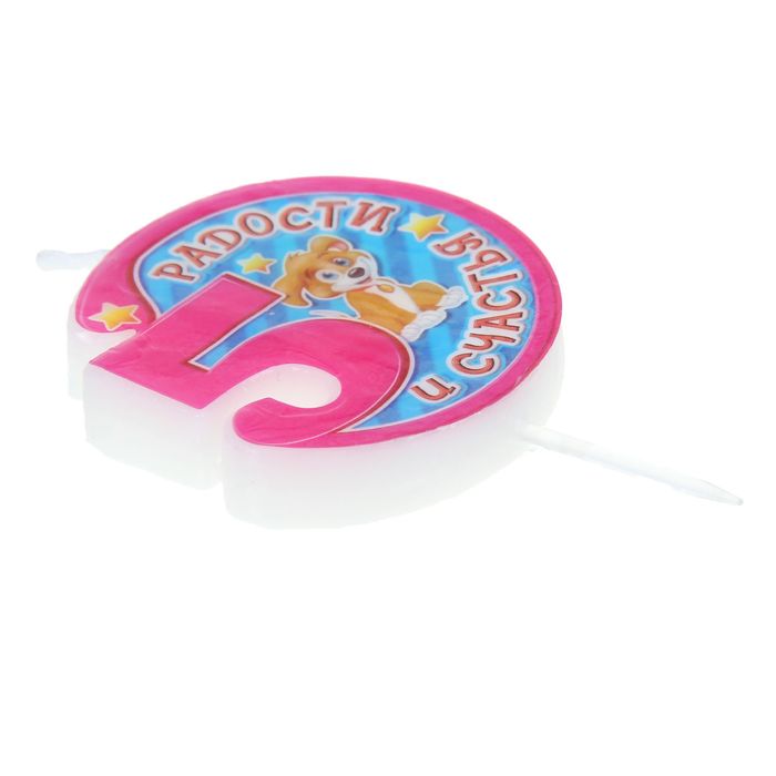Свеча в торт цифра 5 "Радости и счастья" выполнена в авторском дизайне, имеет оригинальную форму с красочным рисунком и размещена на праздничной подложке с нежными пожеланиями для именинника. Загадайте желание, задуйте огонёк, и ваша мечта станет реальностью!