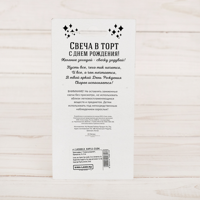 Свеча в торт цифра Дисней 1 "С Днем рождения", Принцессы