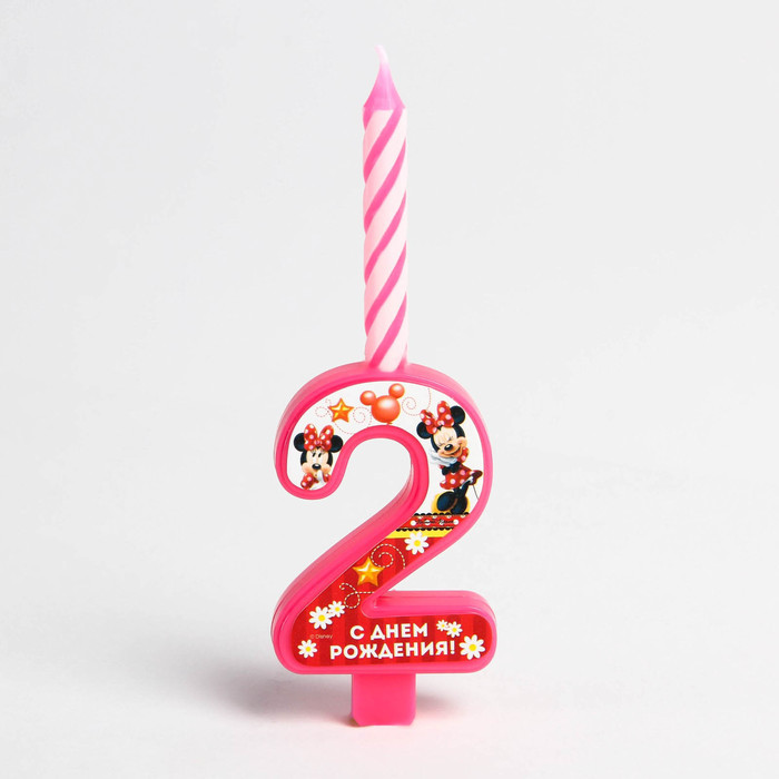 Свеча в торт цифра Дисней "2", Минни Маус — непременный атрибут праздника, который бывает раз в году! Он обязательно поднимет настроение виновнику торжества.