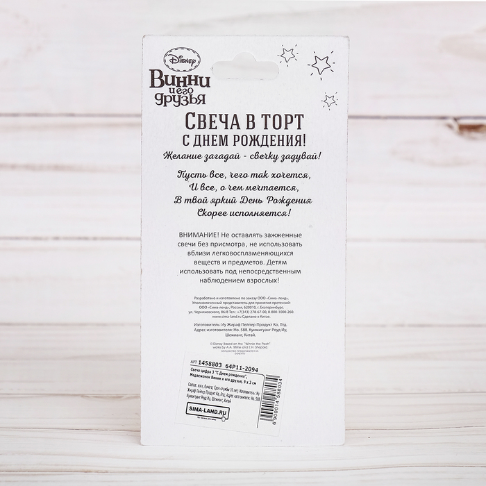 Свеча в торт цифра Дисней 3 "С Днем рождения", Медвежонок Винни и его друзья