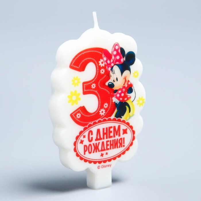 Свеча в торт Дисней 3 "С Днем Рождения", Минни Маус — непременный атрибут праздника, который бывает раз в году! Он обязательно поднимет настроение виновнику торжества.