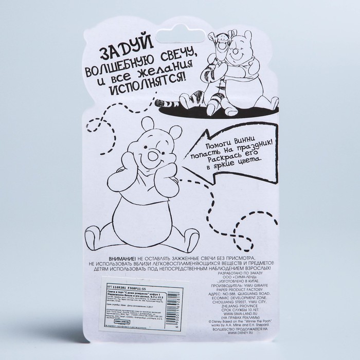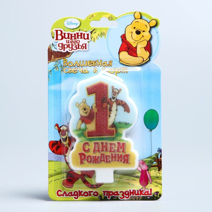 Свеча в торт Дисней "С днем рождения" цифра 1 Медвежонок Винни и его друзья