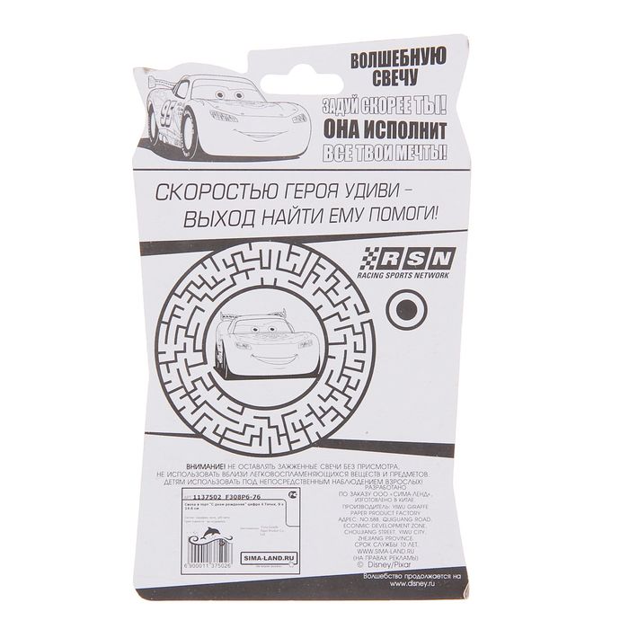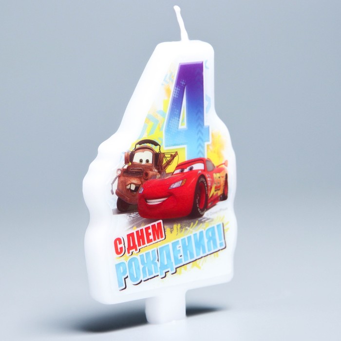 Свеча в торт Дисней "С днем рождения" цифра 4 Тачки