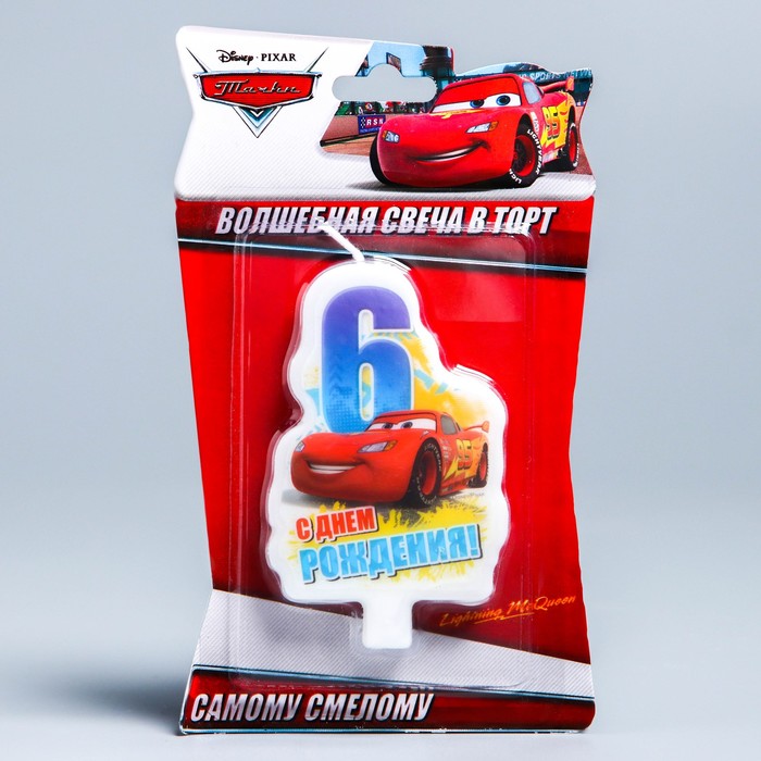 Свеча в торт Дисней "С днем рождения" цифра 6 Тачки