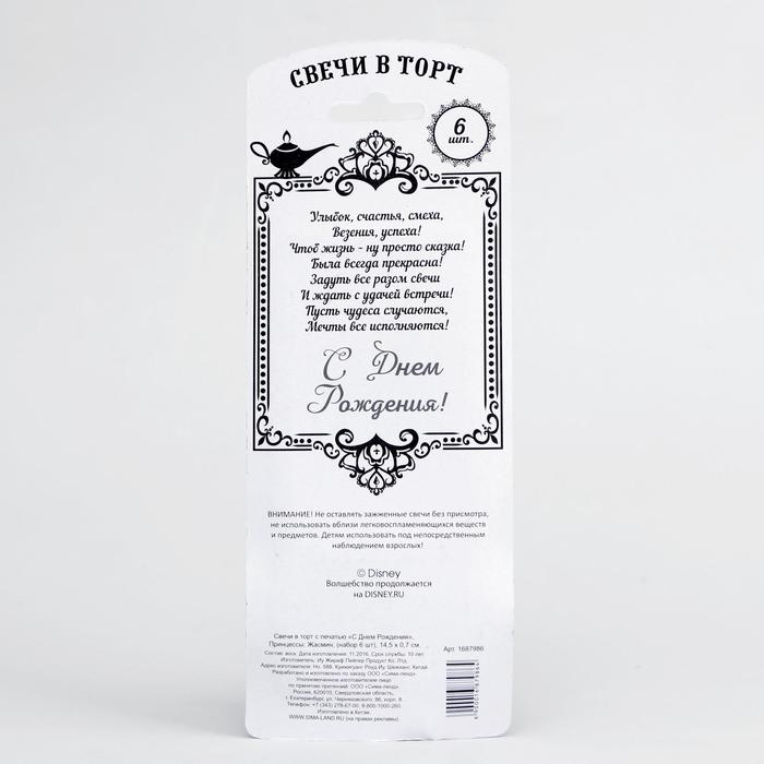 Свеча в торт Дисней "С Днем Рождения", Принцессы: Жасмин, (набор 6 шт) — непременный атрибут праздника, который бывает раз в году! Он обязательно поднимет настроение виновнику торжества.