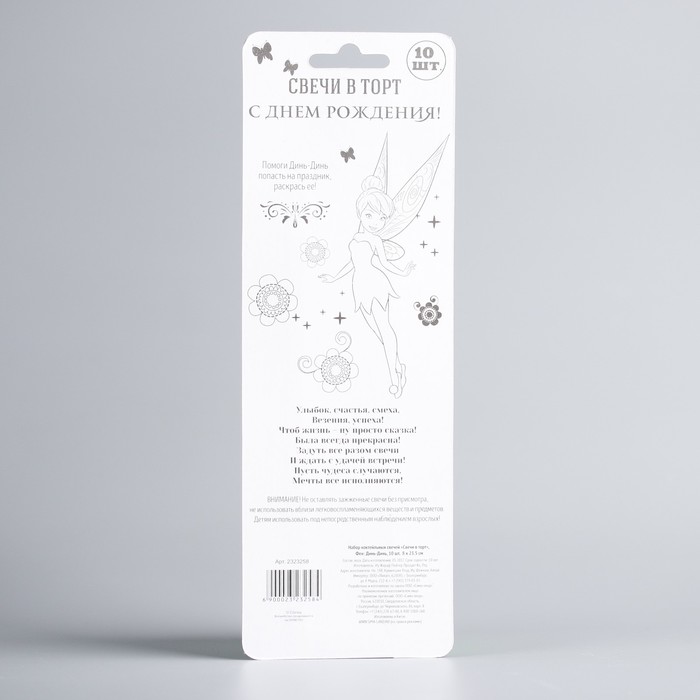 Свеча в торт Дисней " Свечи в торт", Феи: Динь-Динь, 10 шт