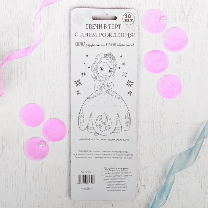 Свеча в торт Дисней " Свечи в торт", София Прекрасная, 10 шт